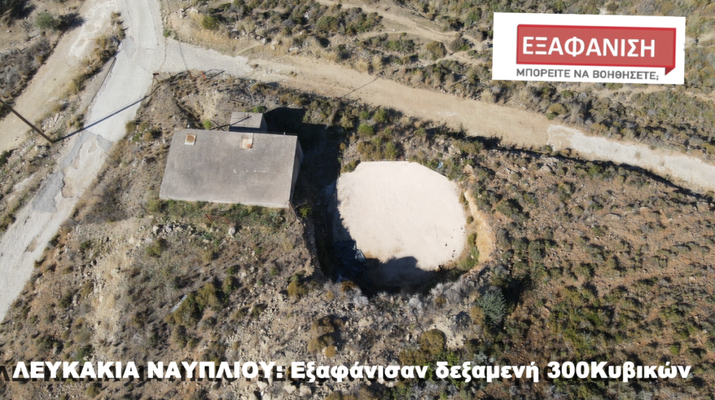 Εξαφάνισαν δεξαμενή 300 κυβικών, άγνωστοι τη μετέφεραν με φορτηγό και την εξαφάνισαν.