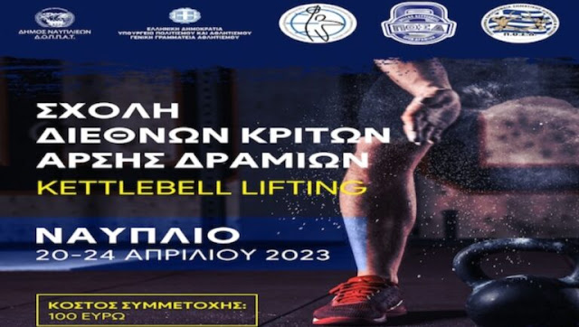 Σχολή Διεθνών Κριτών Άρσης Δραμιών Kettlebell Lifting θα πραγματοποιηθεί στο περιθώριο του Ευρωπαϊκού Πρωταθλήματος της IUKL στο Ναύπλιο, το διάστημα...