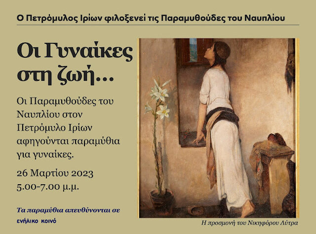 Οι παραμυθούδες του Ναυπλίου την Κυριακή 26/3 5-7μμ στον Πετρόμυλο των Ιρίων, αφηγούνται παραμύθια σε ενήλικο κοινό. Σε έναν χώρο...