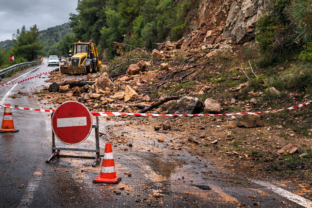 Κλειστό εξακολουθεί να παραμένει τμήμα του δρόμου από την Αρβανιτιά προς την Καραθώνα, μετά τις κατολισθήσεις που σημειώθηκαν στην περιοχή.